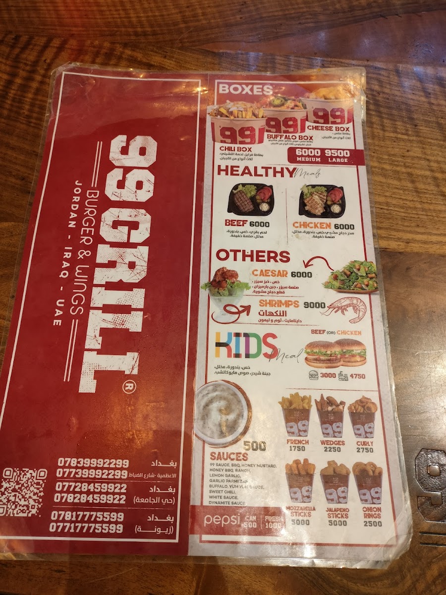 Nestled in the heart of Baghdad, 99 Grill - الاعظميه offers patrons a delightful culinary experience with a focus on grilled delights. Every dish radiates freshness, inviting guests to savor the flavors of perfectly grilled chicken and juicy burgers, including their renowned tender and black brisket selections. Guests rave about the mouthwatering wings, which have earned a loyal following.